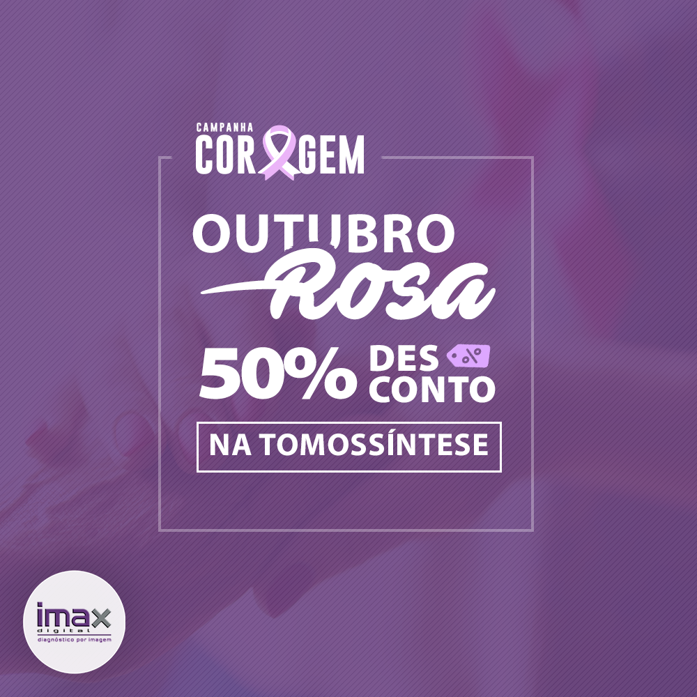 As pacientes com indicação para a realização da tomossíntese que procurarem a Clínica Imax durante o mês de Outubro terão 50% de desconto na realização da tomossíntese, devido a campanha CORAGEM!