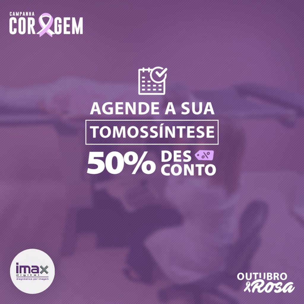 Com o objetivo de facilitar o acesso ao diagnóstico precoce do câncer de mama, a Clínica Imax está disponibilizando a realização da tomossíntese com 50% de desconto durante o mês de OUTUBRO.