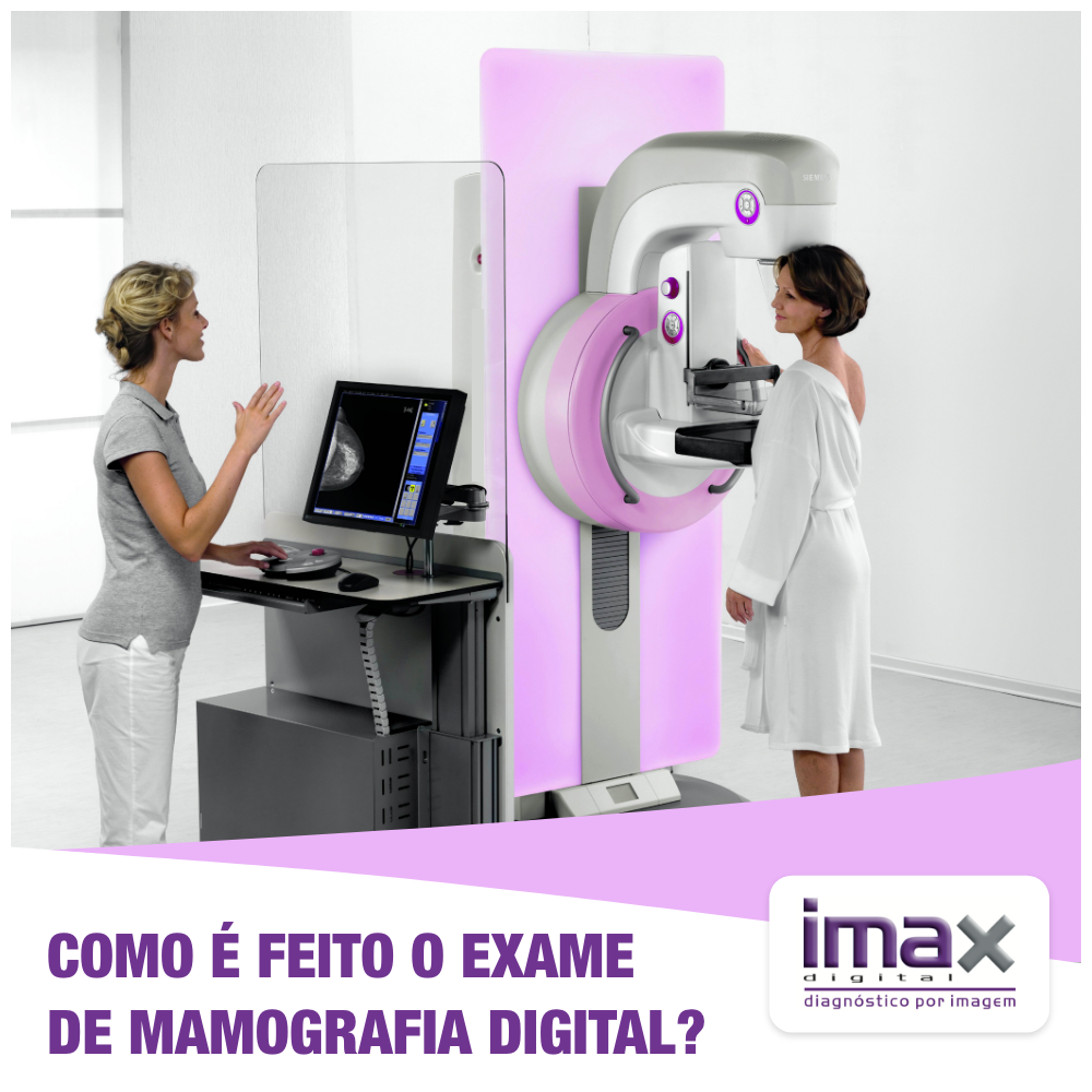 Esse exame de diagnóstico por imagem é feito pelo mamógrafo, um aparelho de raio-x. A mulher é posicionada em pé próxima ao equipamento e suas mamas são, uma a uma, comprimidas pelo mamógrafo, horizontal e verticalmente. As imagens produzidas são de alta qualidade e resolução e são usadas para o estudo de todos os detalhes do tecido mamário da paciente. Ele é essencial para detectar nódulos, lesões ou cistos e diagnosticar o câncer de mama ainda no começo, logo no estágio inicial, em que as chances de cura são muito grandes e chegam a 95%.