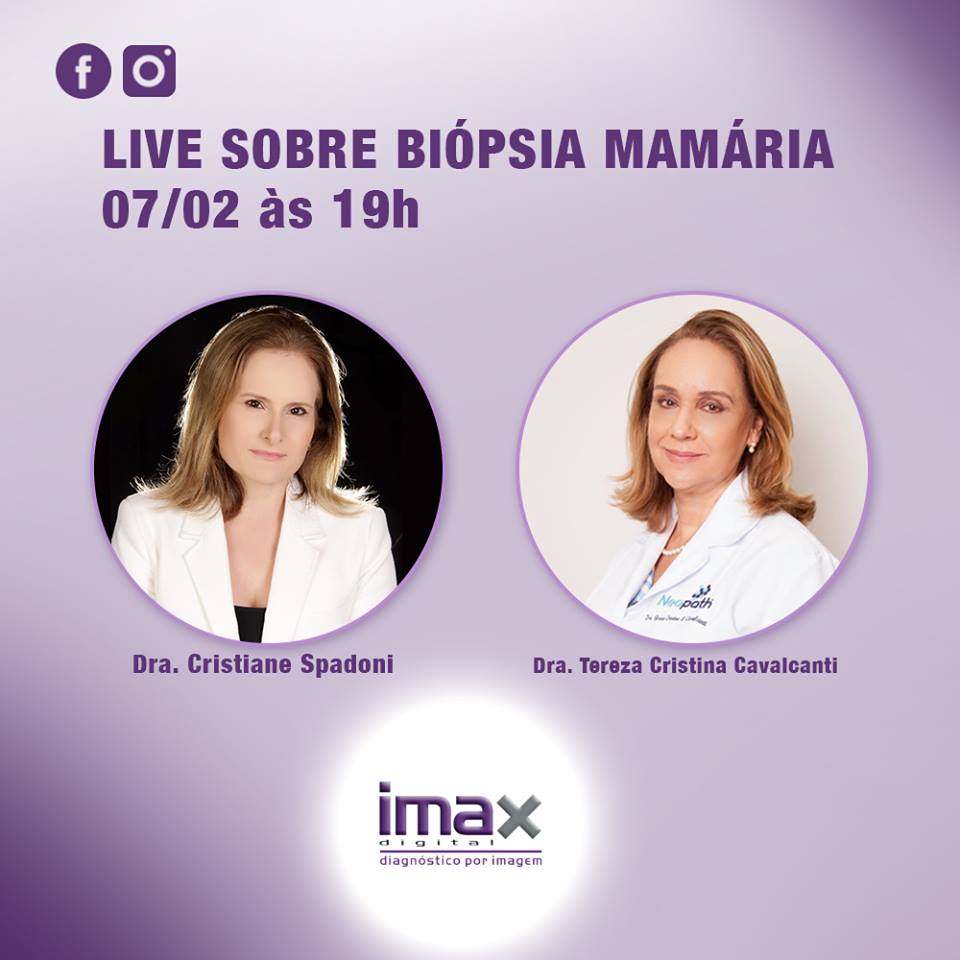 Na próxima quinta-feira (7), às 19 horas, a doutora Cristiane Spadoni da Clínica Imax explica sobre as diferenças nos exames de biópsias mamárias, ao lado da doutora Tereza Cristina Cavalcanti, médica patologista do Neopath em Curitiba. É imperdível.