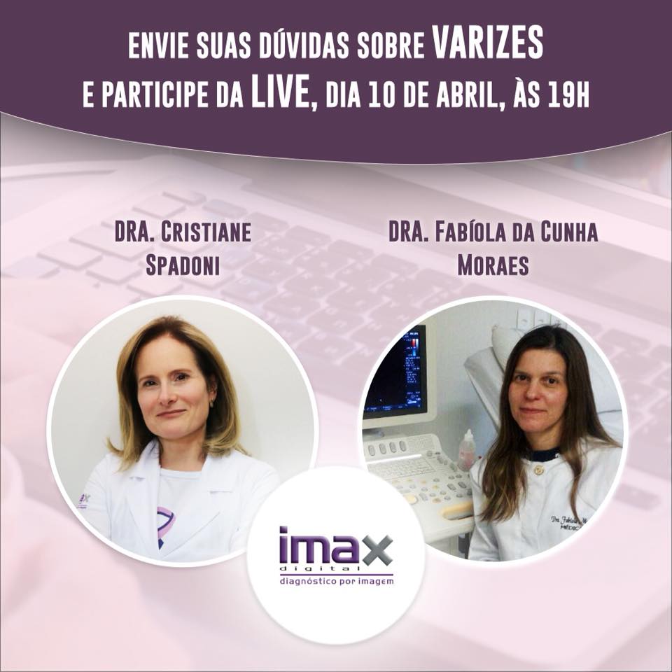 Quer entender mas e tirar todas as suas dúvidas sobre o assunto? Acompanhe a transmissão na próxima quarta-feira (10), às 19 horas, com a doutora Cristiane Spadoni, médica radiologista da Imax – ao lado da doutora Fabíola da Cunha Moraes – médica angiologista, especialista em ecografia vascular com doppler.