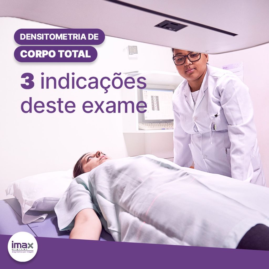 O exame de densitometria de corpo total faz uma avaliação completa da composição corporal do paciente, apontando a quantidade de massa óssea, massa muscular, água e gordura.
