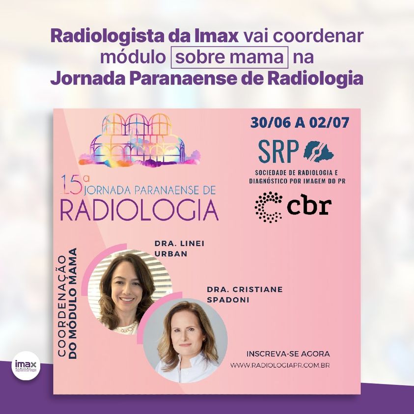 A Dra. Cristiane Spadoni, médica radiologista da Clínica Imax, em Curitiba, vai ser uma das coordenadoras do módulo sobre mama na 15ª Jornada Paranaense de Radiologia, que acontece entre os dias 30 de junho e 02 de julho, em Curitiba.