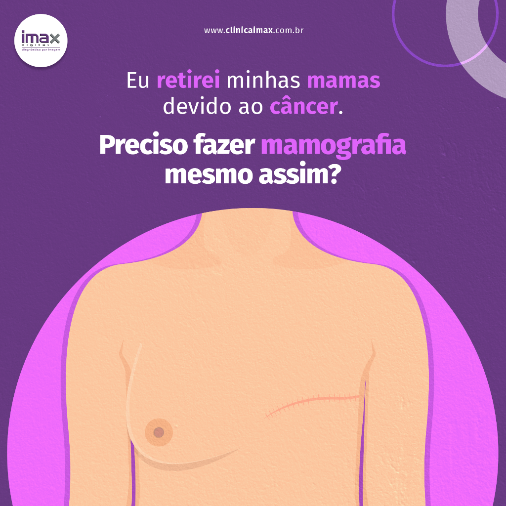 Caso apenas uma das mamas tenha sido retirada é de extrema importância realizar mamografia e o acompanhamento do seio que nãofoi retirado.