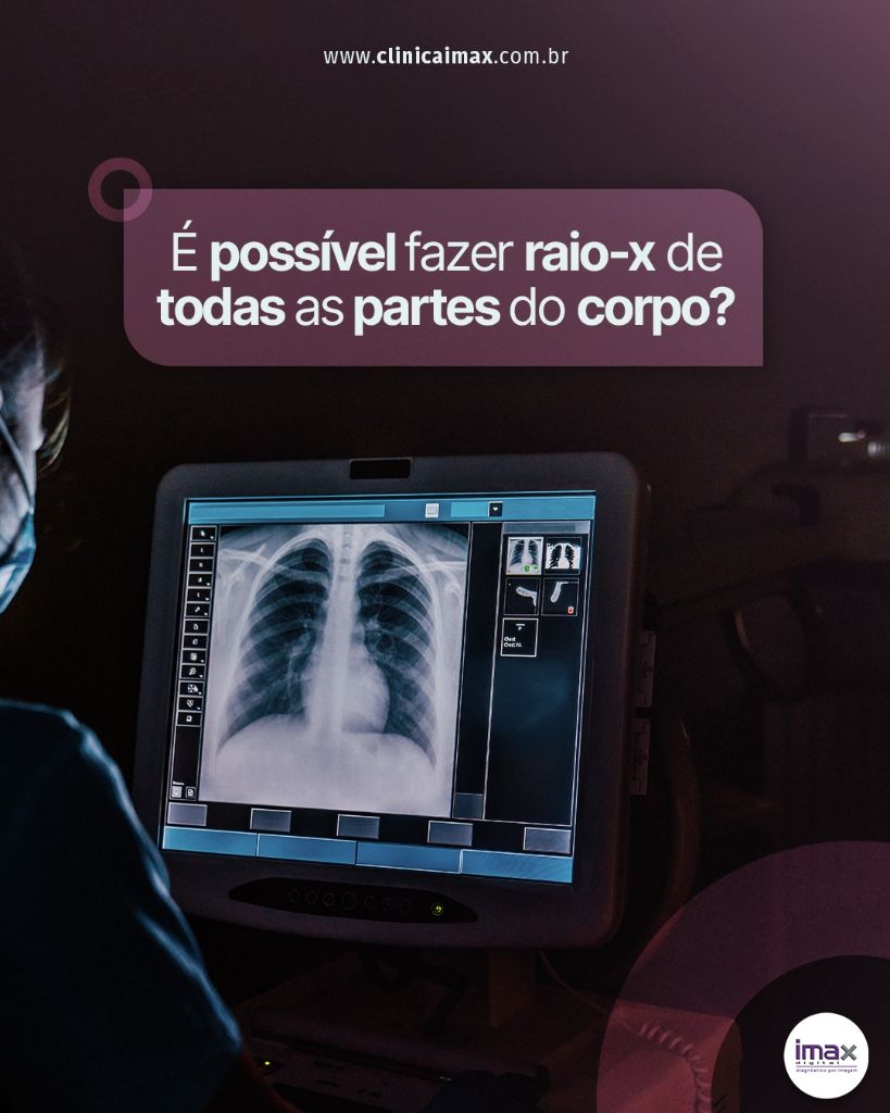 É possível fazer o exame de raio-x de diversas partes do corpo, como pernas, braços, costelas, tornozelos, punhos, mãos, pés e quadril, entre outras. Para cada região é necessário criar uma imagem diferente e a solicitação é feita pelo médico.